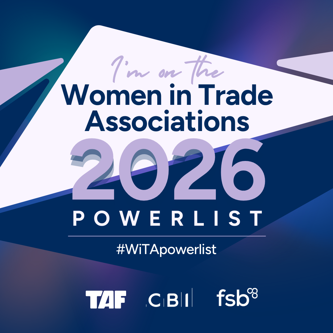 The Women in Trade Associations (WiTA) Powerlist is an annual celebration of the outstanding women who are driving positive change across the UK’s trade association landscape. Created through a collaboration between the Federation of Small Businesses (FSB), the Confederation of British Industry (CBI) and the Trade Association Forum (TAF), the Powerlist showcases women who demonstrate exceptional leadership, influence and commitment across their industries.